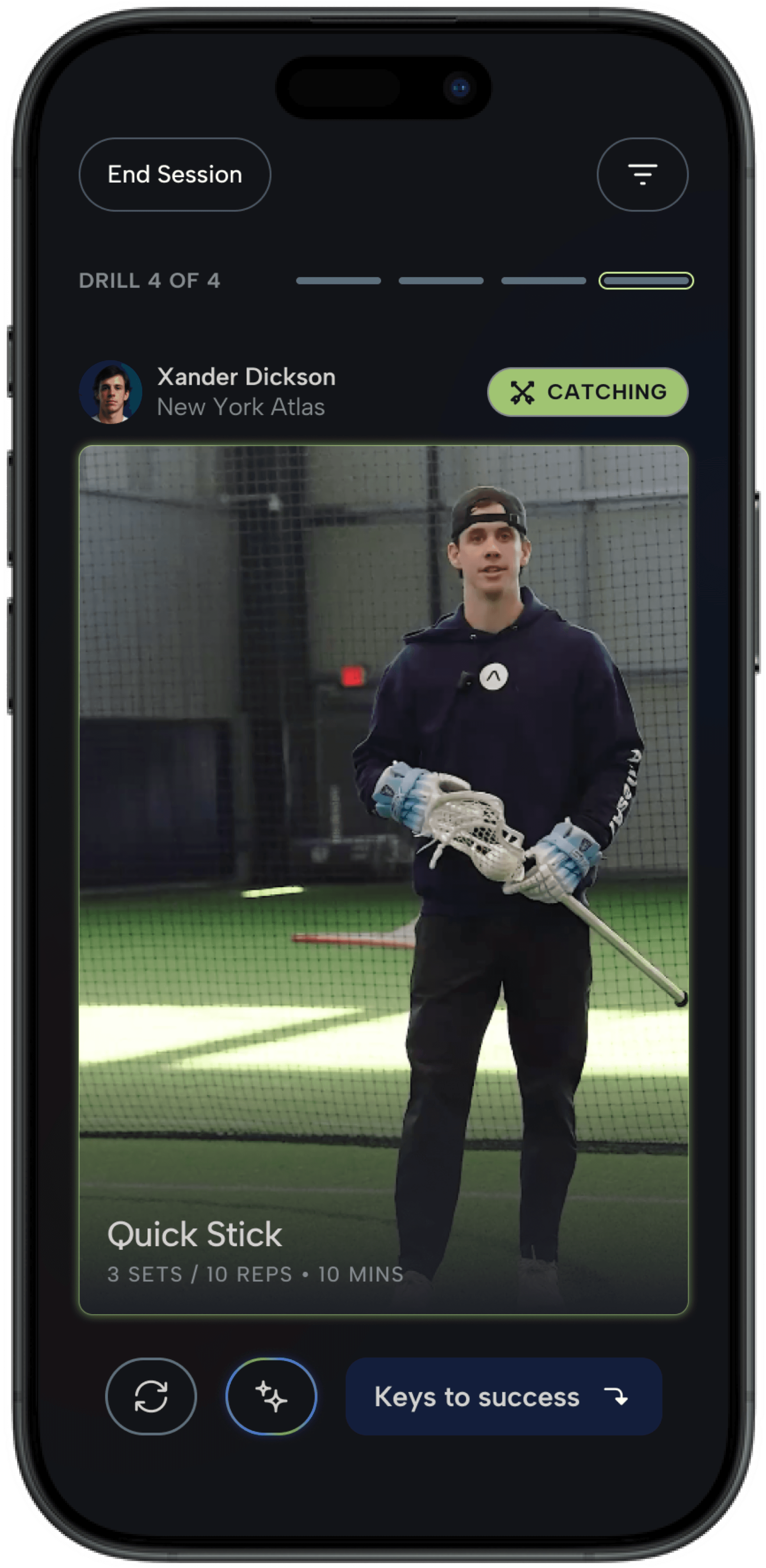 AI mentorship from NCAA and PLL pros like Xander Dickson, Abby Bosco, and more.