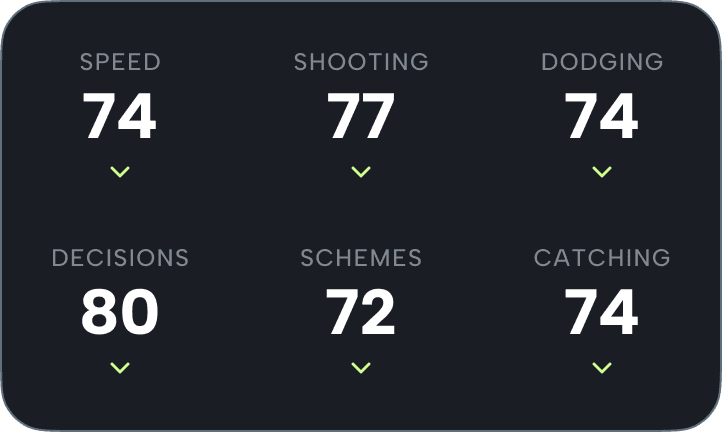 Your AthesCard shows your skills ratings and player archetype. The more sessions you complete, the faster your ratings improve.